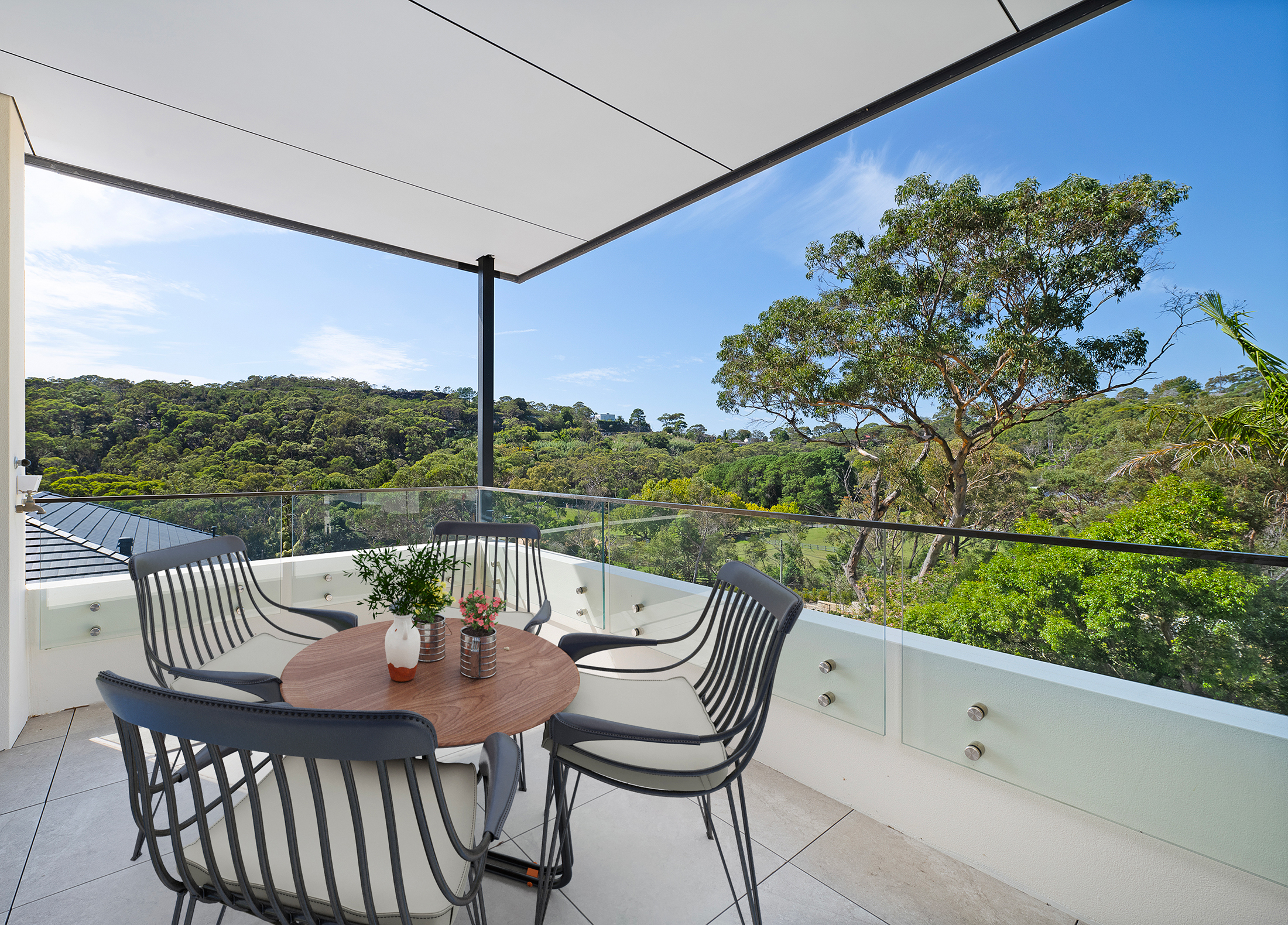 This light-filled two-bedroom apartment commands a top floor position with a beautiful outlook to enjoy the morning sun on the covered balcony.